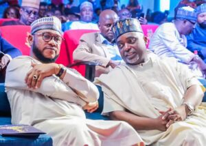 From L-R: Governor of Zamfara State, Dauda Lawal Dare with Hon. Commissioner for Information Kaduna State, Ahmed Maiyaki, during the Nigerian Broadcasting Award Night held in Abuja. Photo: BASHIR BELLO DOLLARS